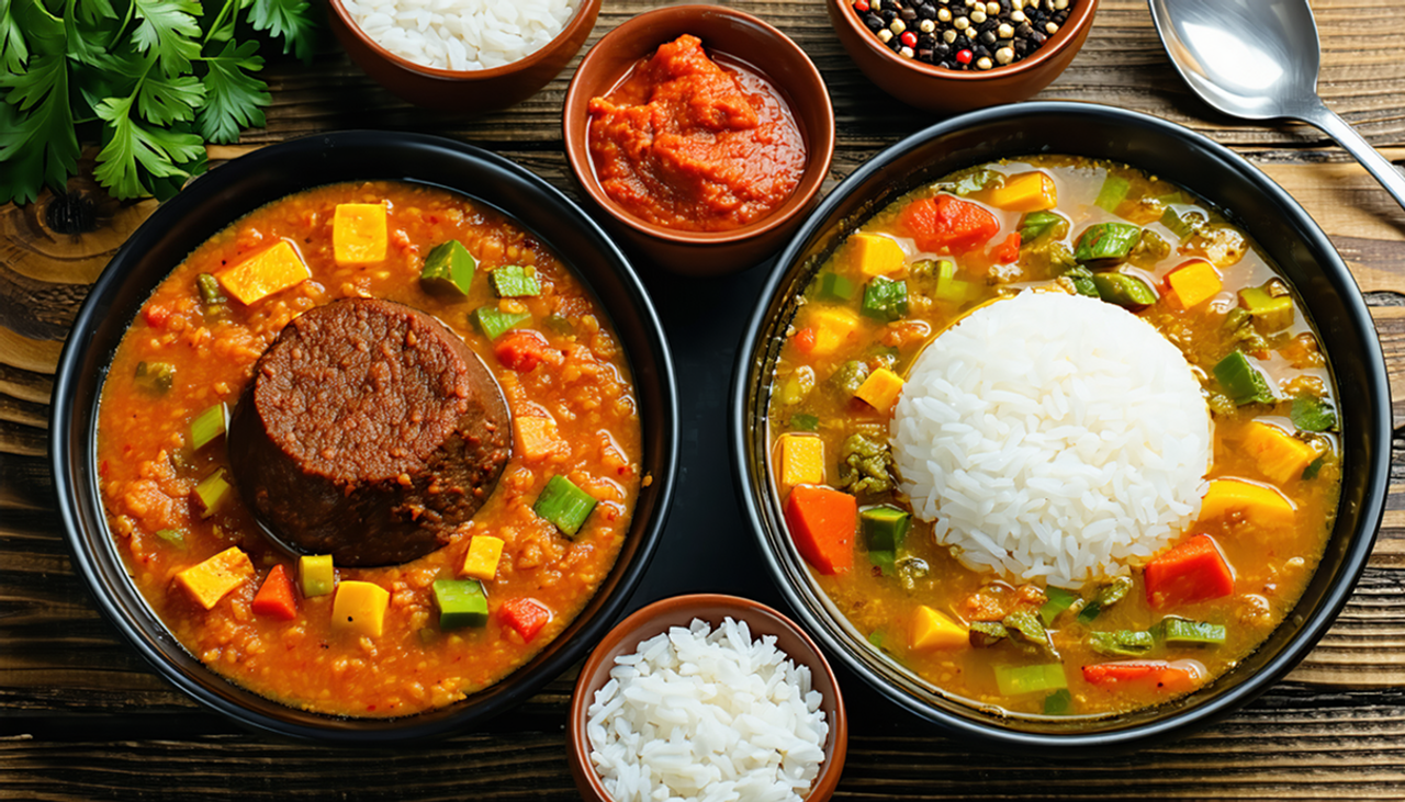 A classic Yoruba duo of jute leaf soup and bean-based stew, best with Amala.