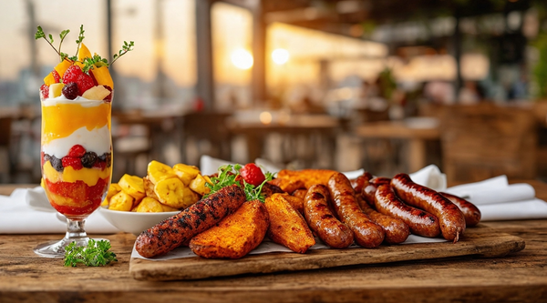 A delicious mix of flavorful chicken and two sausages, wrapped in soft bread with tasty sauces.