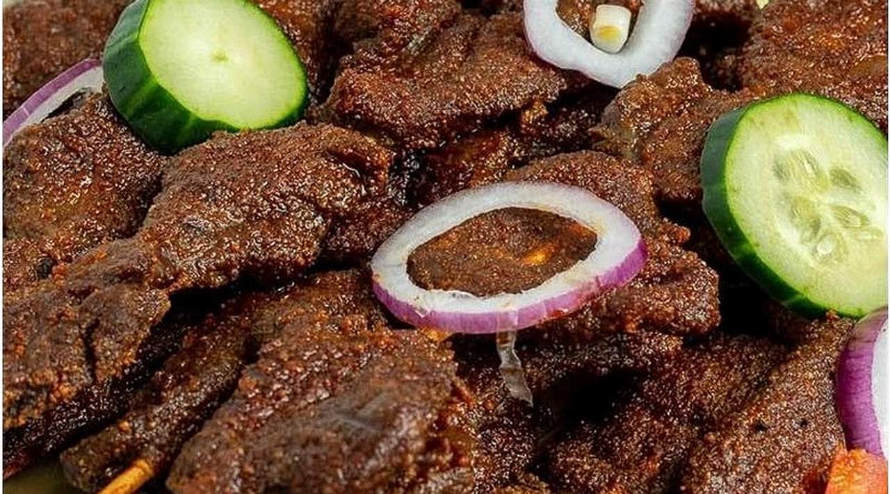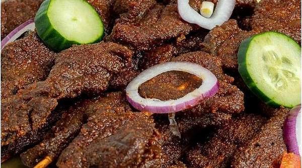 Grilled cow tripe (Shaki) and meat chunks (Tozo) seasoned with traditional suya spices