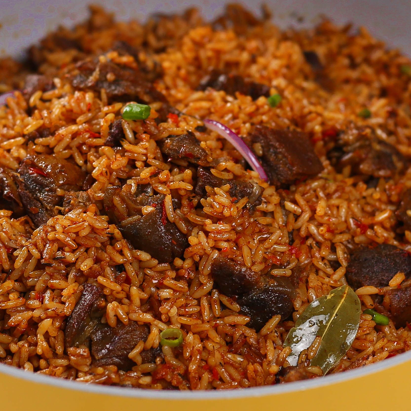 Smoky ewa agoyin with plantain, pomo, and eja kika, flavorful.