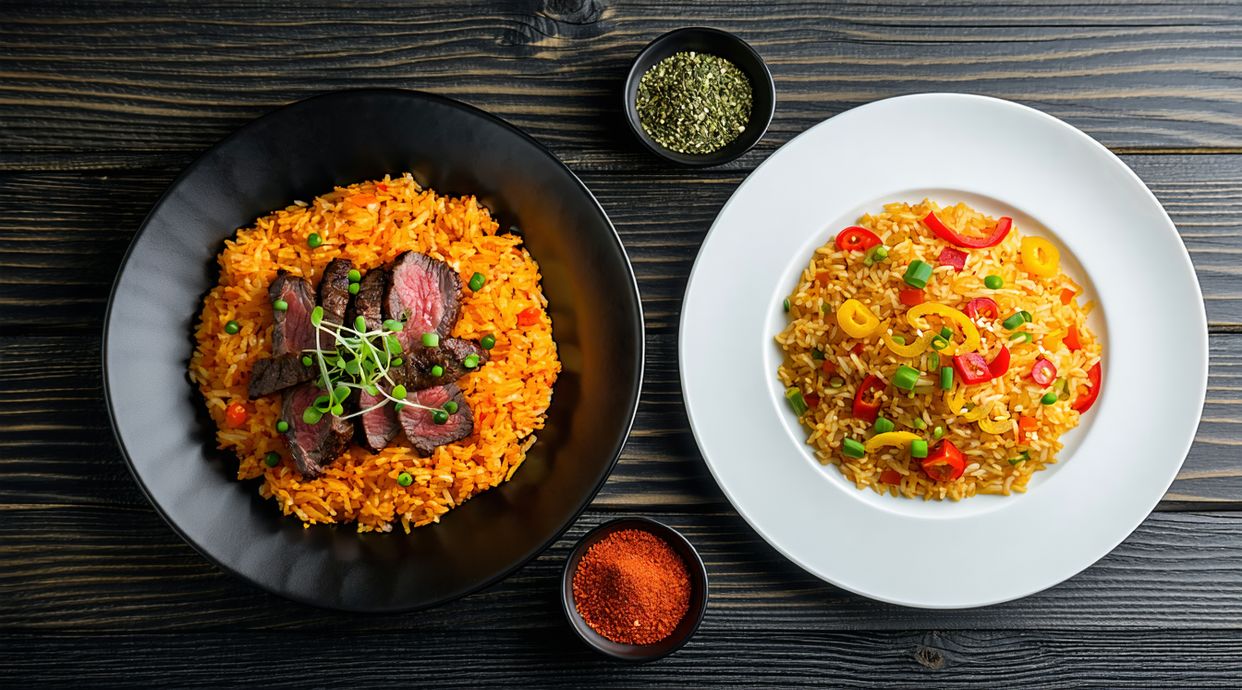 Authentic Ofada rice, assorted meat, plantain and ayamase sauce