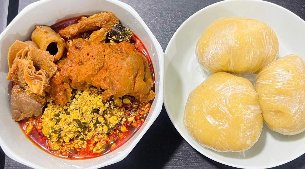 Yam dish cooked in a well seasoned pepper mix until soft and fluffy with yam chunks