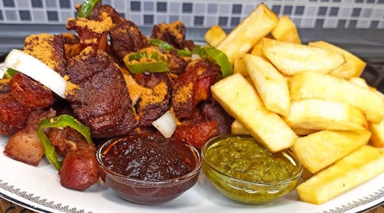 FRIED YAM WITH SAUCE AND GRILLED CHICKEN
