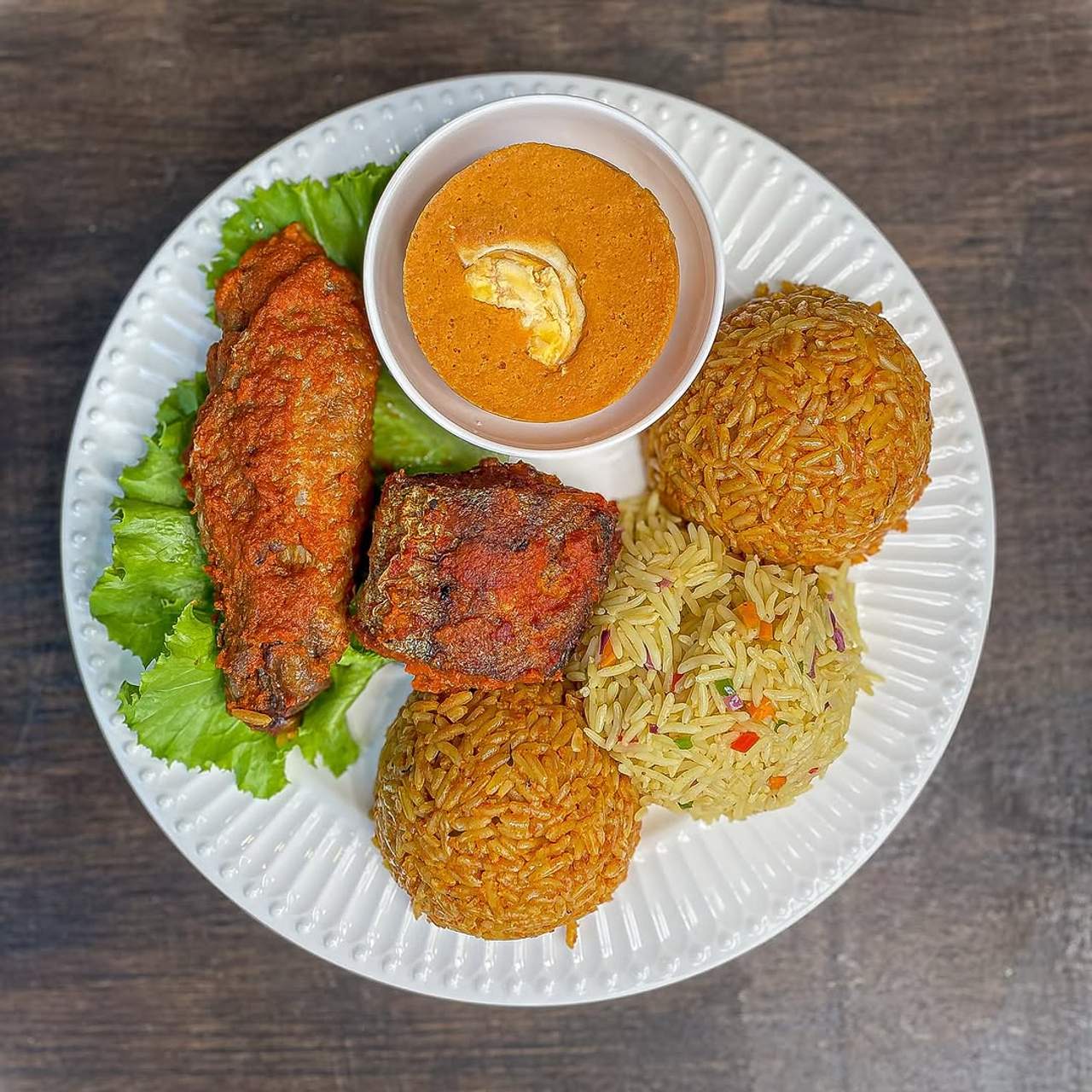 A popular West African rice dish cooked in tomato sauce
