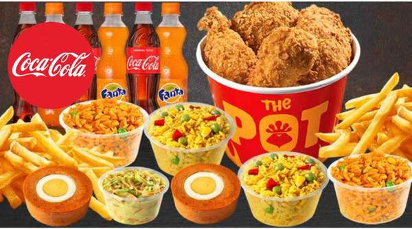 Enjoy 4 pieces of Soulfully Spiced Fried Chicken with your choice of 2 portions of Spaghetti, Fried Rice, Naija Jollof or Rice & Beans with sauce plus 1 portion of Moin Moin or Coleslaw and 2 PET drinks