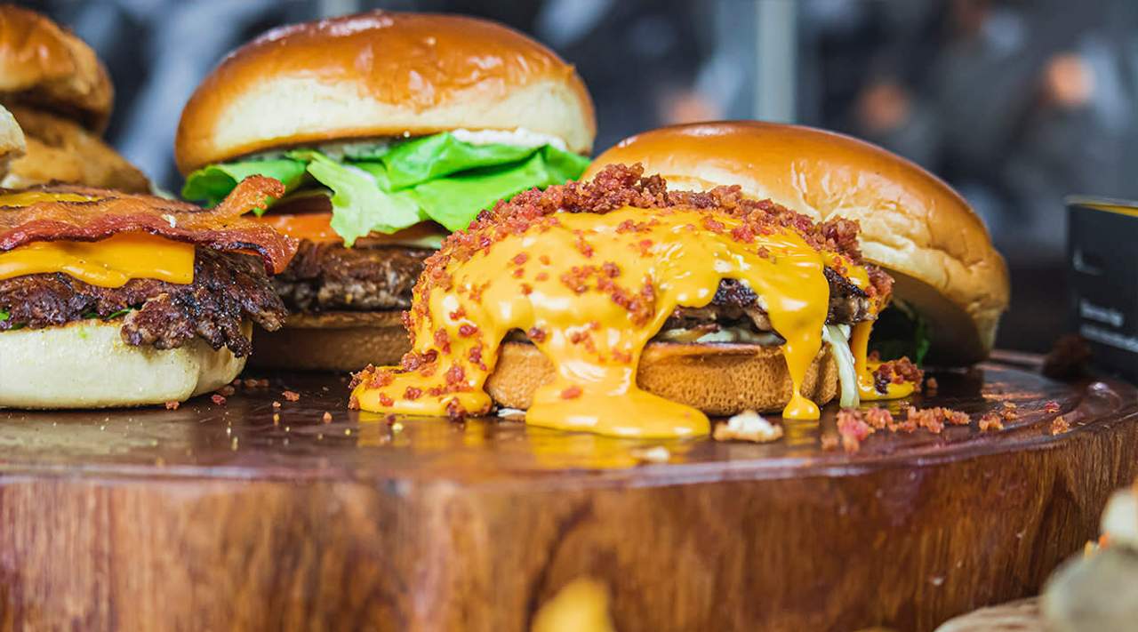 Wołowina, bułka maślana, ser cheddar, sałata, pomidor, ogórek konserwowy, bekon, cebula, sos cesarski