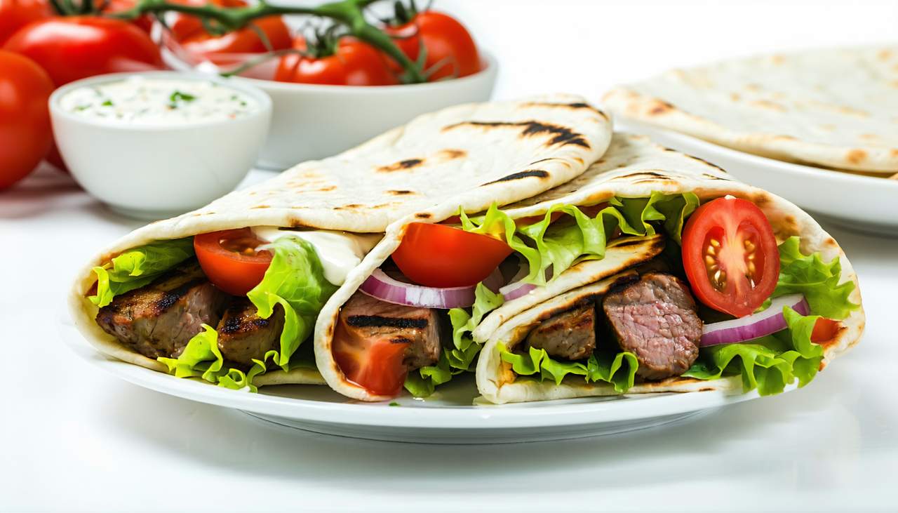 Pita, mięso, surówka, sos *zdjęcie poglądowe *zdjęcie poglądowe