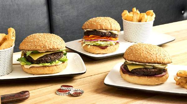 Bułka z podwójnym mięsem, serem, mixem sałat, pomidorem, czerwoną cebulą, ogórkami konserwowymi i sosem
