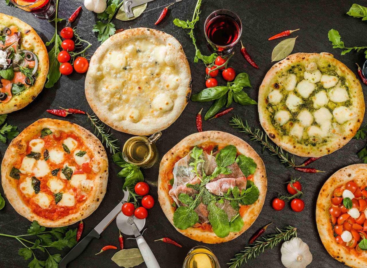 Sos pomidorowy, ser parmezan, śmietana, krem z czarnych trufli, szynka włoska wędzona