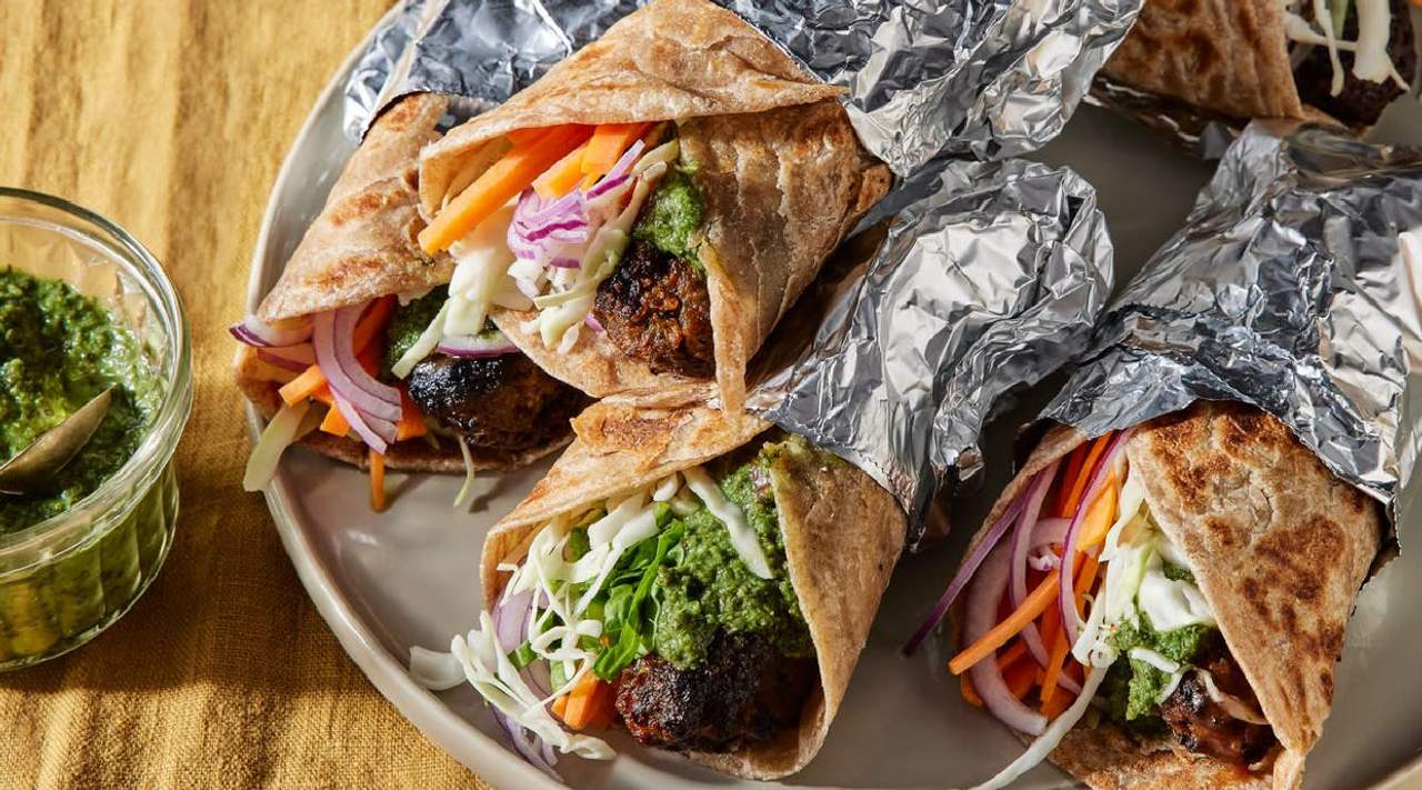 z surówką, falafelem i sosem