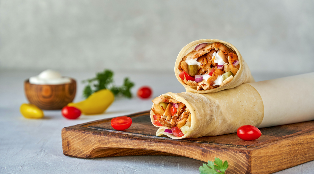 Mieso,surowka biala,czerwona pomidor,ogórek cebula,papryka,mięso, sos