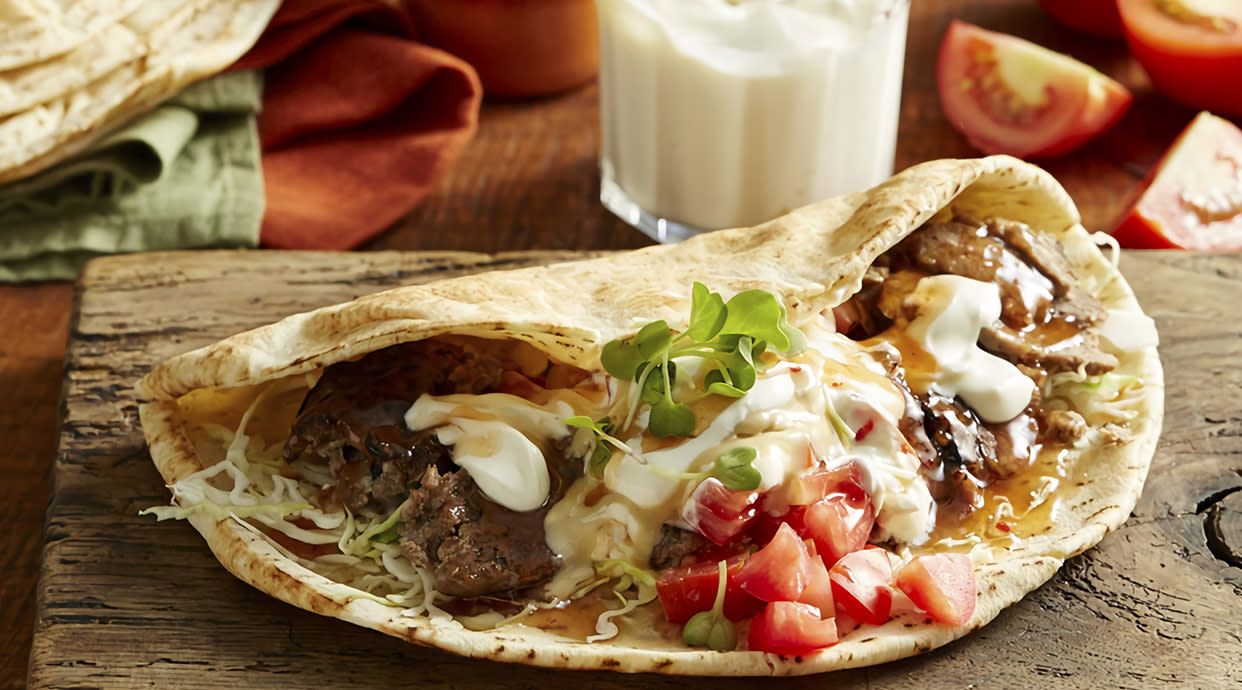 Frytki, Mięso, Ser ,Salata Lodowa, Ser Feta , Ogorki, pomidor , Papryka Cebula , Sos
