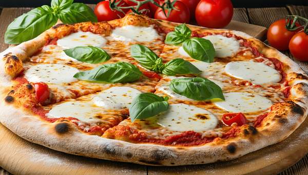 pelati, mozzarella, grana padano, świeża bazylia (zapiekane w piecu)