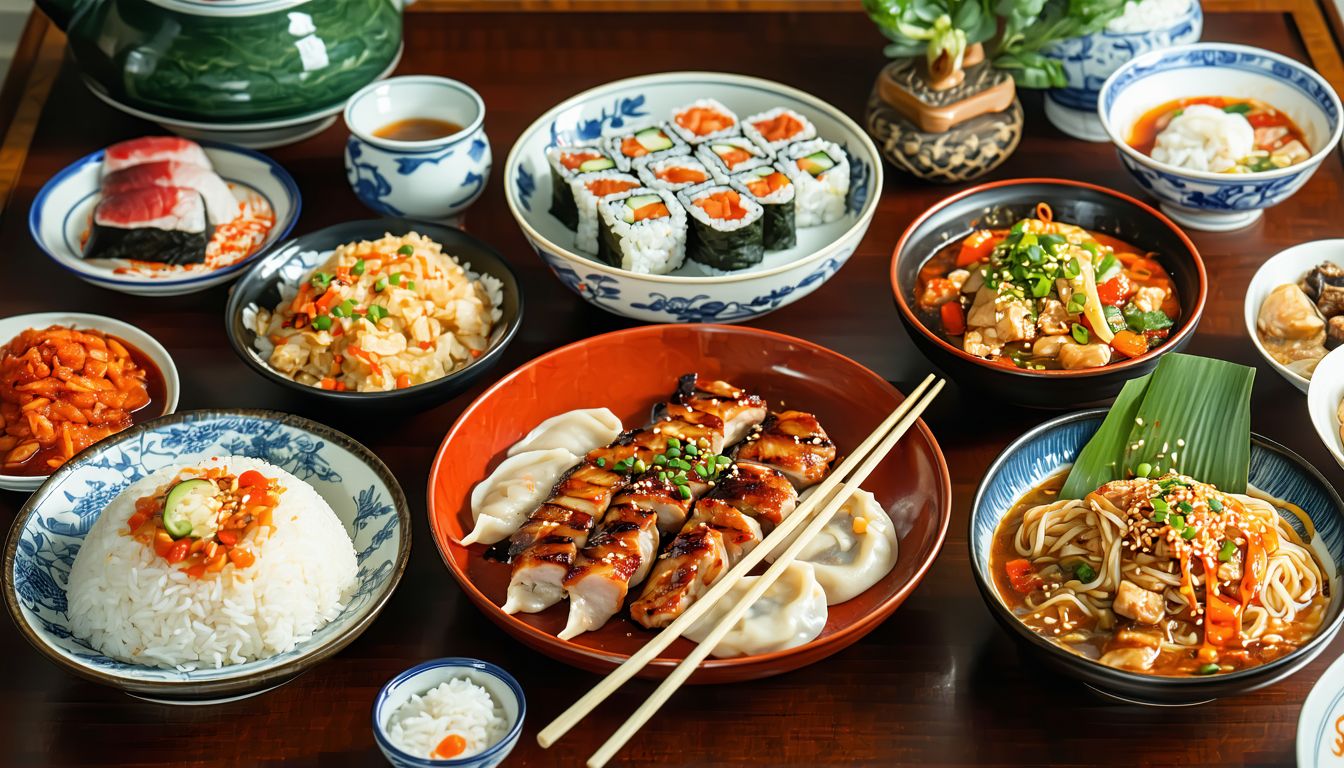Azjatycka wersja Aglio e Olio, danie przygotowane jest na bazie makaronu pszennego, chili, sezamu, szczypiorku, kiełków fasoli mung oraz oleju z 9 azjatyckich ziół