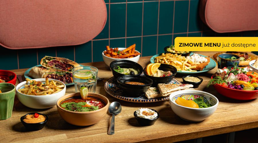 klasyczny hummus/ falafele z sosem orzechowym/ pomarańczowo - kolendrowa piklowana marchewka/ kalarepa/ chrupiące ogórki kiszone / kuskus /colesław /warzywa/ brukselka / papryczki /marchew pieczona/ pita arabska