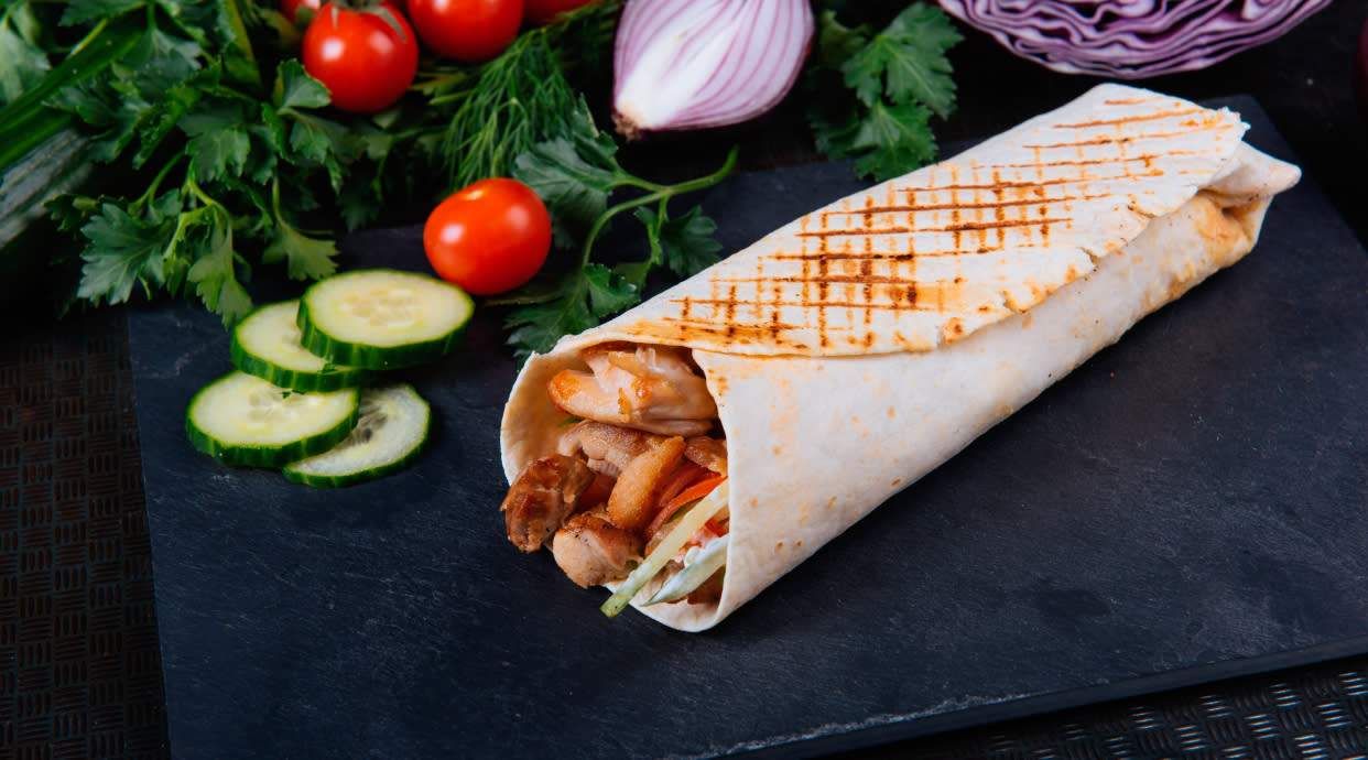 Chlebek pita, mięso, warzywa, sos