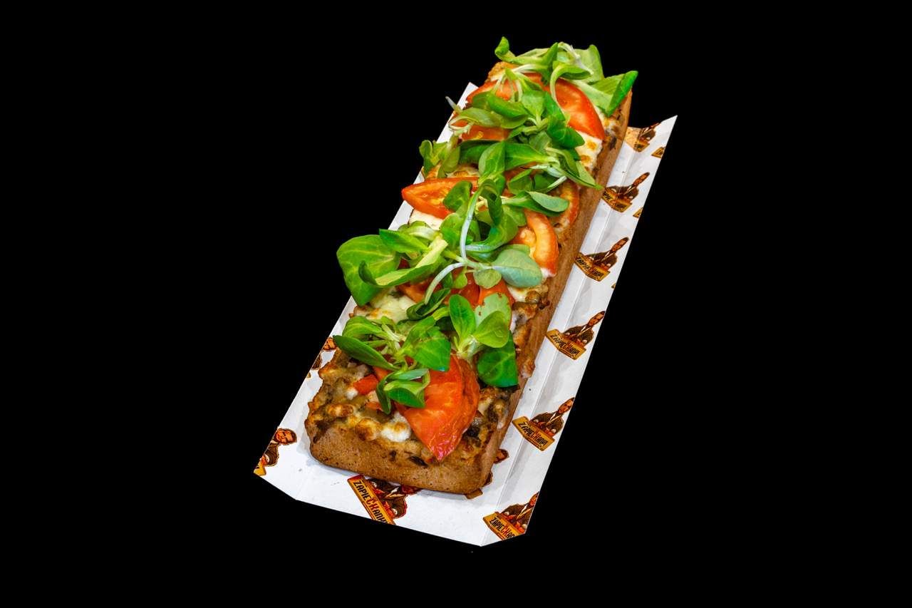 Z pieczarkami, serem, salami, pomidorem i roszponką. Rozmiar i sos do wyboru.