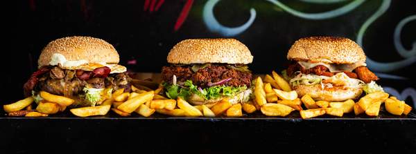 Wół, ser gouda, boczek, cebula, pieczarki, jajko sadzone, sos tatarski