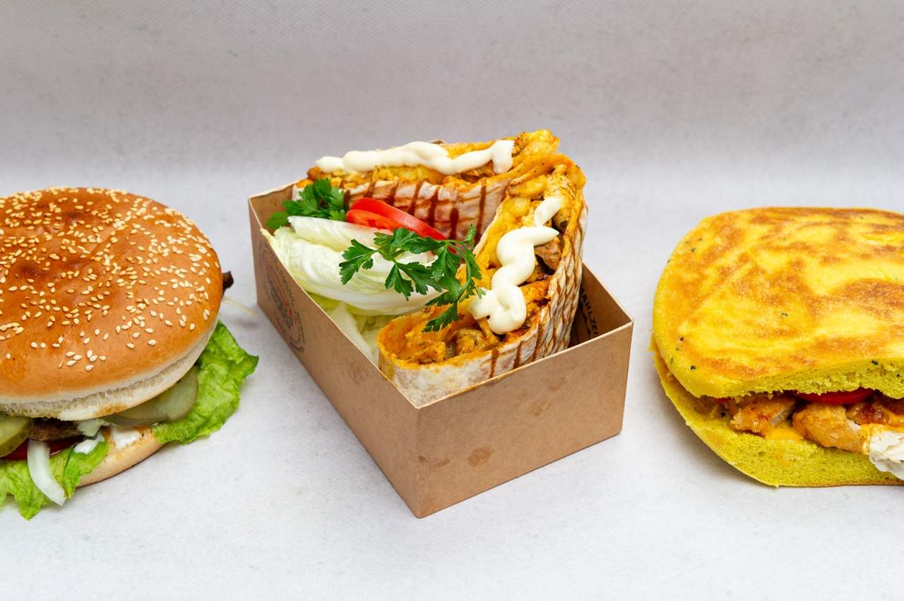 1 tortilla, 1 mięso, frytki, sos, sos serowy