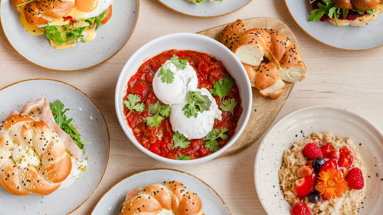 Słoneczna eksplozja smaków! Aromatyczny sos pomidorowo-paprykowy z jajkami w koszulce, podawany z miękkim Urbarzankiem i świeżo zerwaną kolendrą – prosto z Bliskiego Wschodu na Twój talerz.