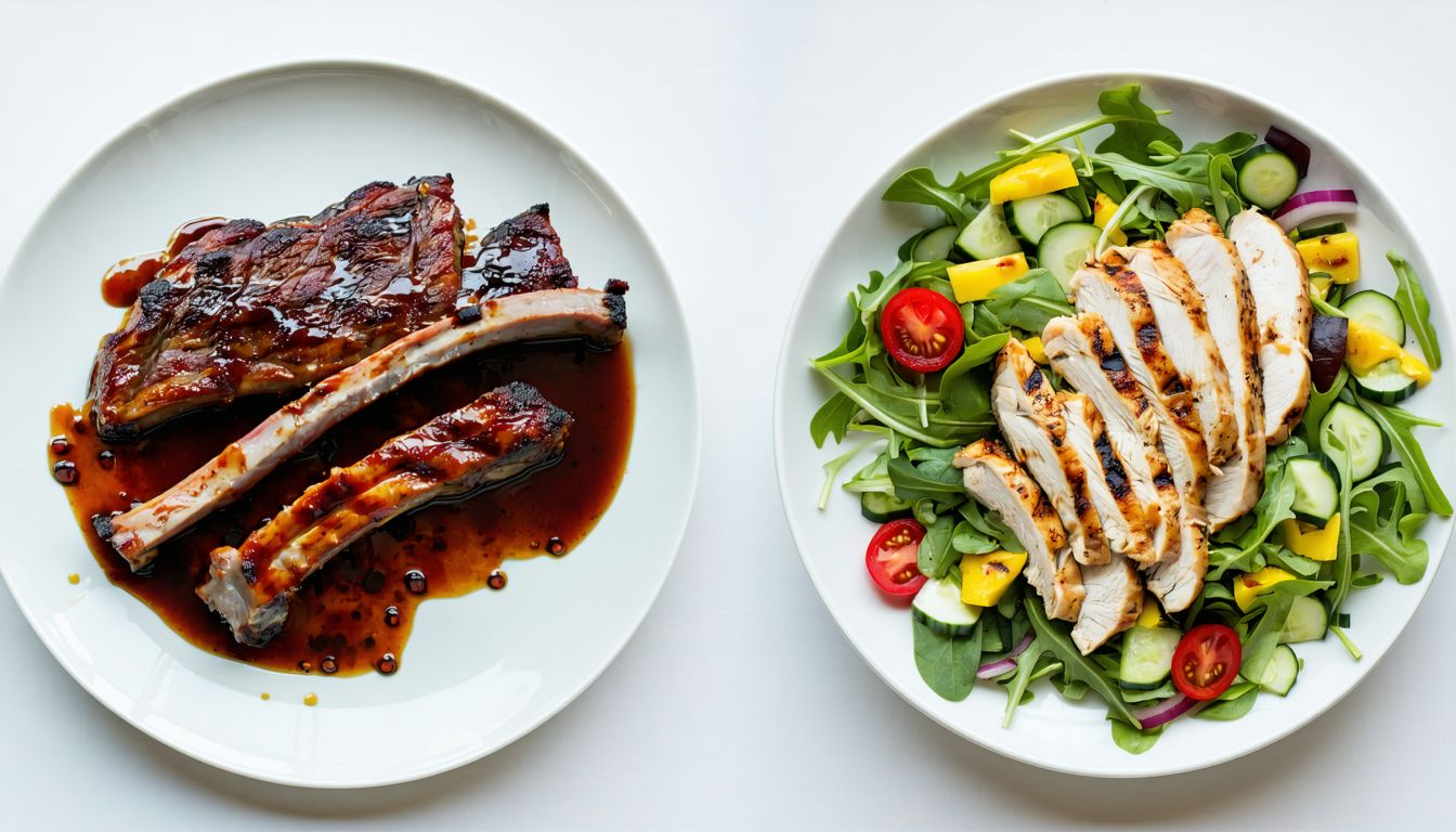 Świeża sałatka z kawałkami kurczaka i warzywami