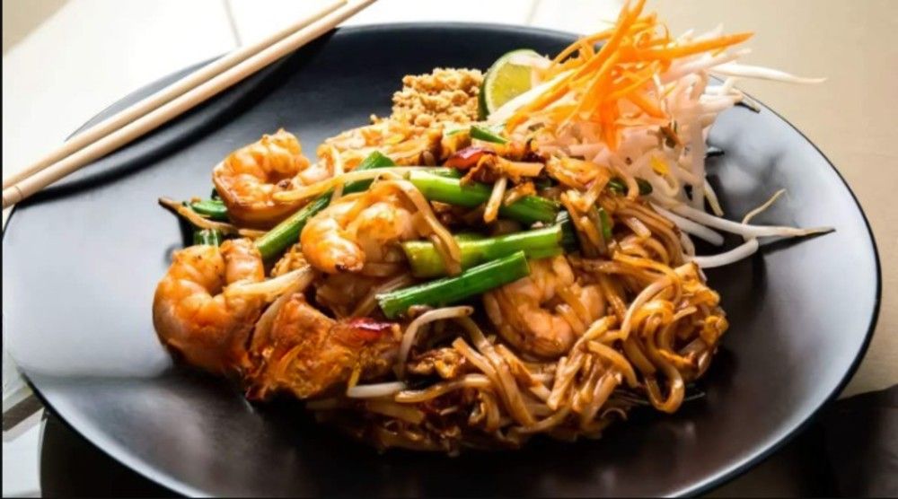 Klasyka tajskiej kuchni! Makaron ryżowy, Warzywa, Krewetki (7szt.), Orzechy i sekretny sos robiony na miejscu.