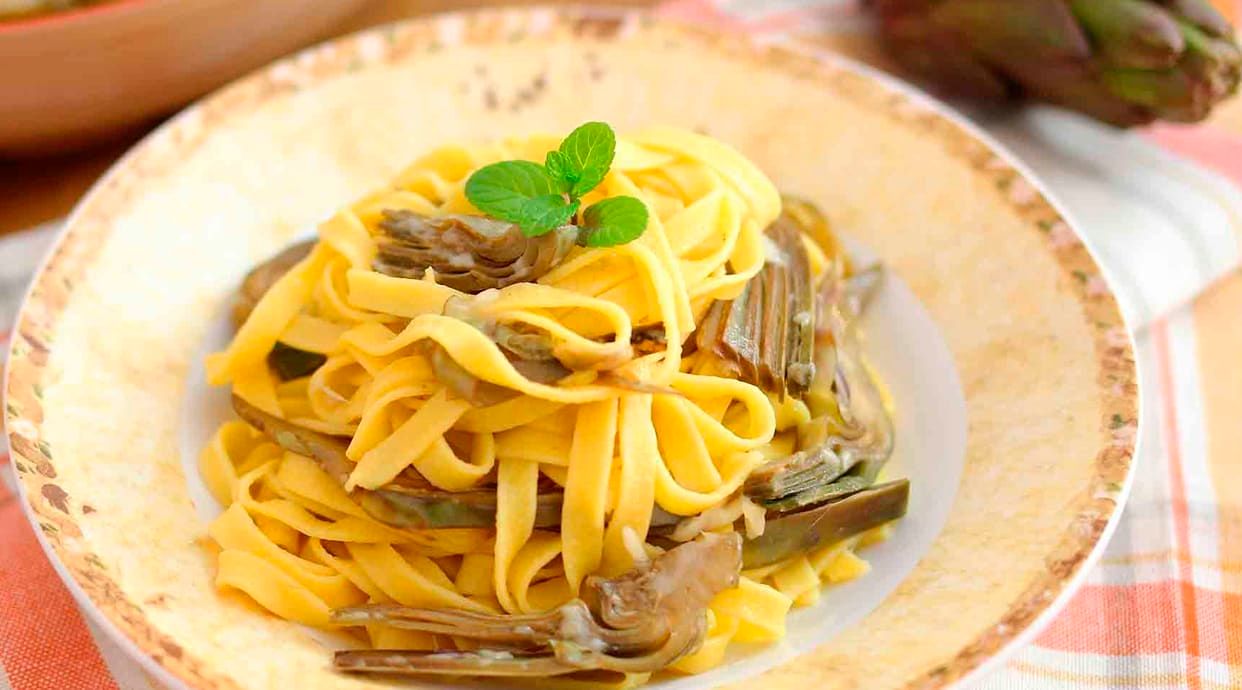 Tagliatelle z boczniakiem i żółtym serem w sosie śmietanowym