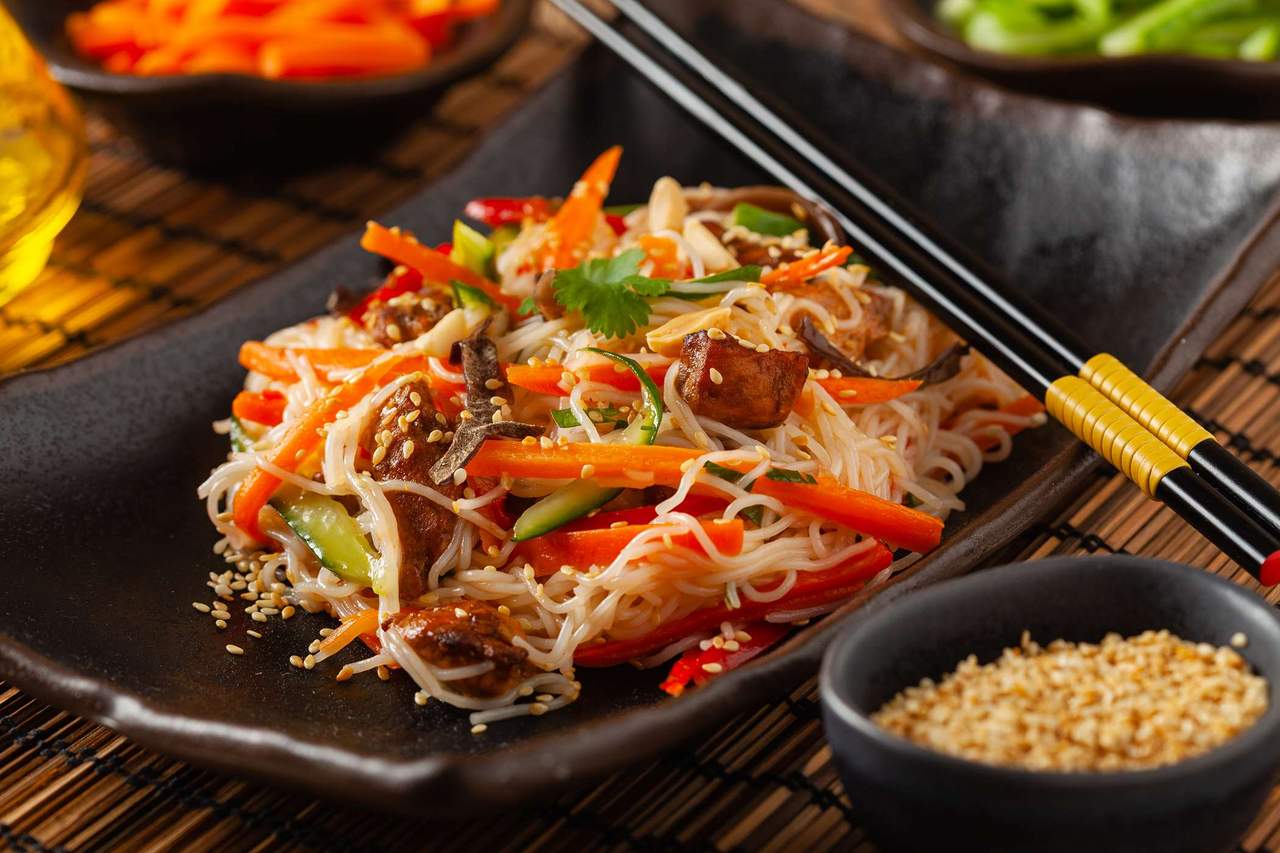 Serwowane z makaronem ryżowym *zdjęcie poglądowe