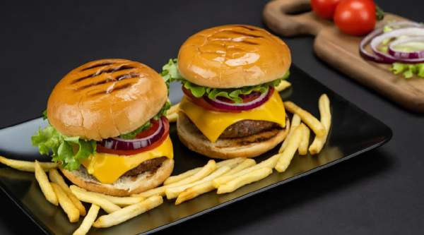 bułka pszenna, 280g soczystej wołowiny, sałata lodowa, ser feta, oliwki czarne, ogórek konserwowy, pomidor, czerwona cebula, sos czosnkowy