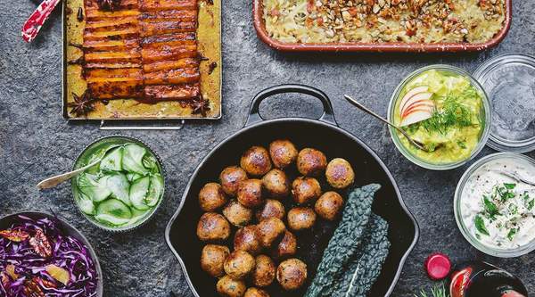 Baranina w sosie własnym z warzywami podawana z plackami indyjskimi (zdjęcie poglądowe przekroju różnych dań)
