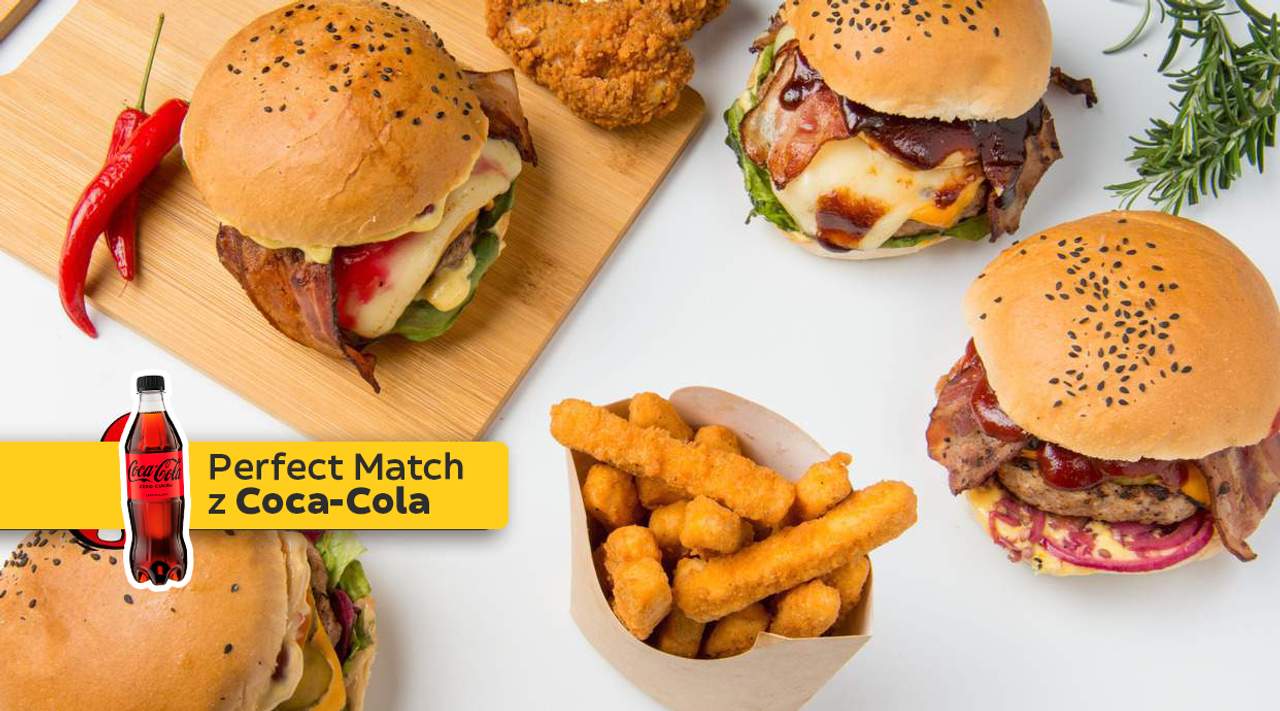 Zestaw: Burger «Gryf» + Frytki z batatów z dowolnym sosem + Coca-Cola 200 ml