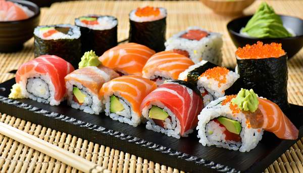 Łosoś, łosoś w togarashi, łosoś w koperku i soli morskiej, tuńczyk, ryba maślana, pieczony węgorz, gotowane krewetki *zdjęcie poglądowe*