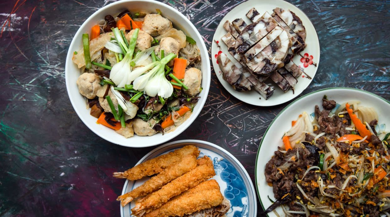 Makaron sojowy, spaghetti i ryżowy z surówką