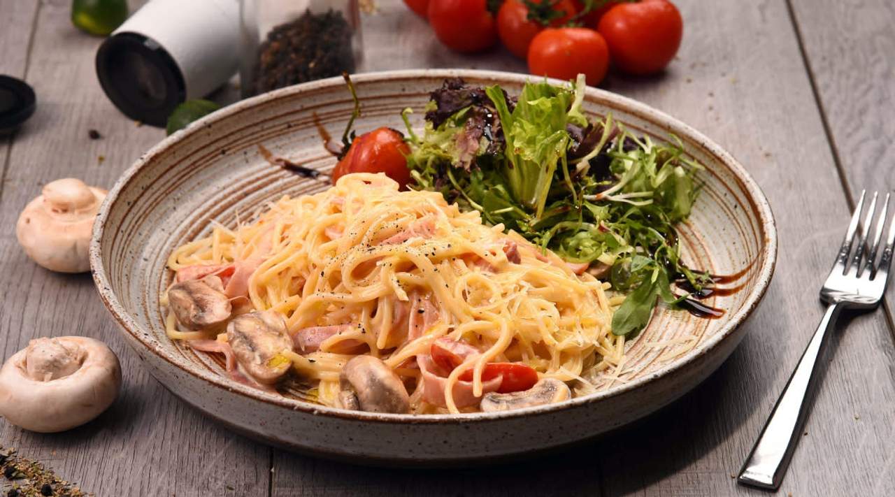 Pomarańcza, pomidor, czerwona cebula, orzechy włoskie, kapary podawana na mixie salat, z parmezanem I sosem miodowo-musztardowym (laktoza, orzechy, gorczyca, gluten, soja)