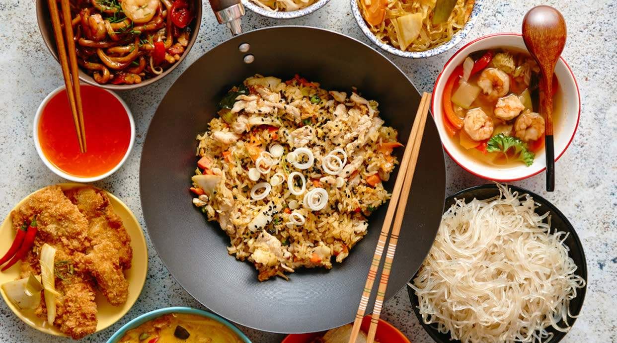 Smażony delikatny makaron sojowy z jajkiem, warzywami, z dodatkiem kurczaka lub wieprzowiny.