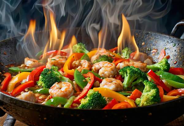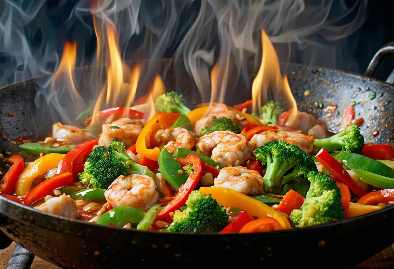 Chiński pieczony makaron sojowy z krewetkami *zdjęcie poglądowe