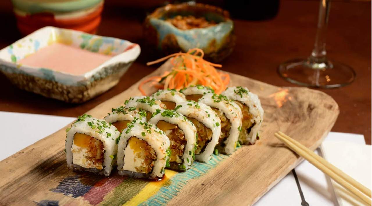 Krewetka w panko, ogórek, awokado, pikantny majonez, marynowana tykwa, oshinko, dżem chilli