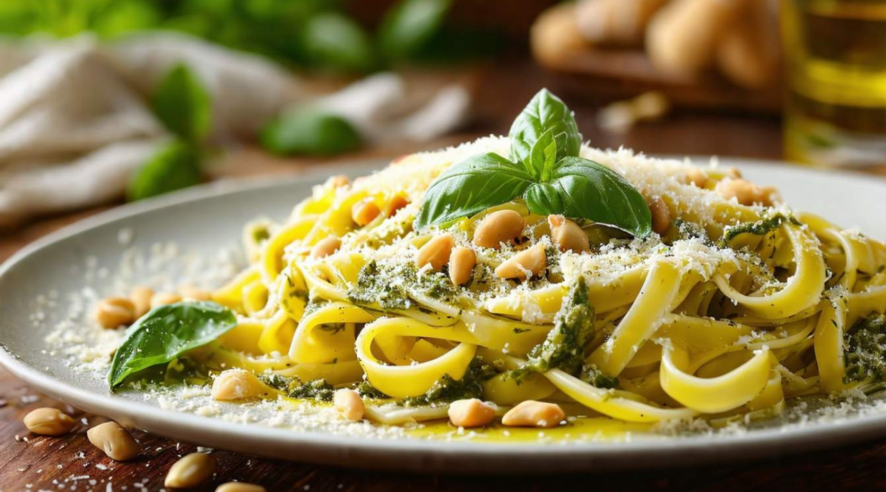 Pasta z bazylii, oliwa, orzeszki pinii, parmezan