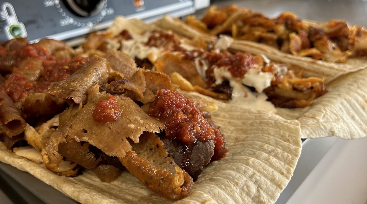 Pita 65 g Mięso 150 g Sosy Surówka z czerwonej kapusty Ogórek kiszony Warzywa grillowane Cebula prażona Bekon Ser cheddar