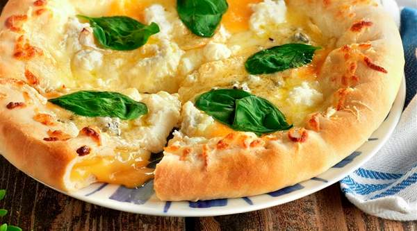 Sos pomidorowy, mozzarella, parmezan, pieczarki, cebula, mascarpone, trufle