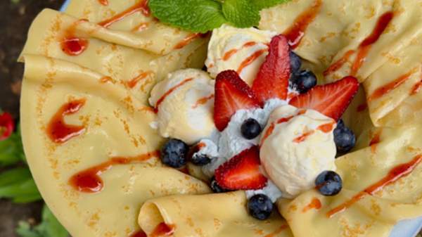 Naleśnik z lodami 300g, Z owocami, bitą śmietaną
