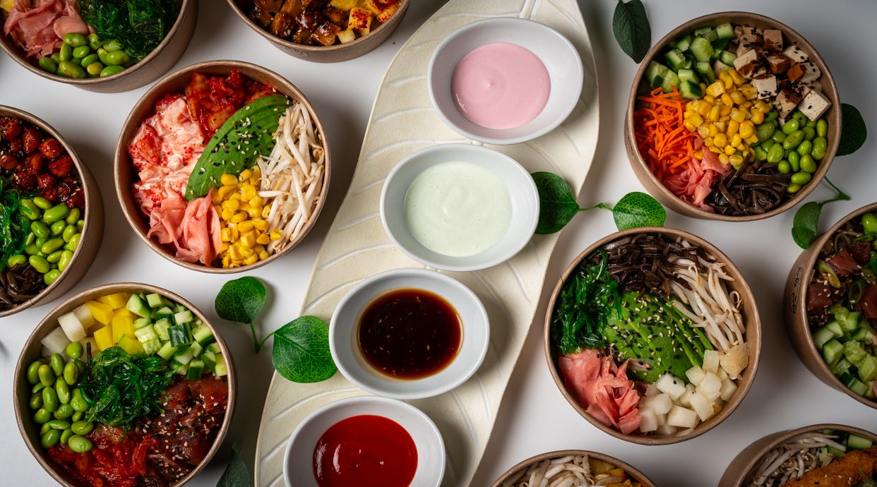 Bazą każdej miski jest ryż sushi, do każdej miski 5 dodatków w cenie