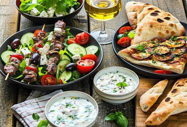 ser halloumi w picie z oliwkami i sosem tzatziki