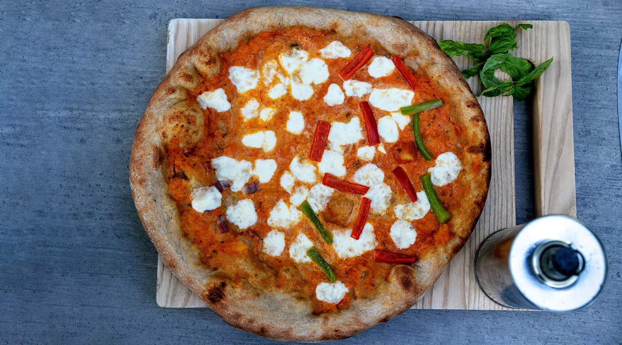 Sos pomidorowy, ricotta w brzegu, mozzarella, gorgonzola, parmezan *Zdjęcie poglądowe