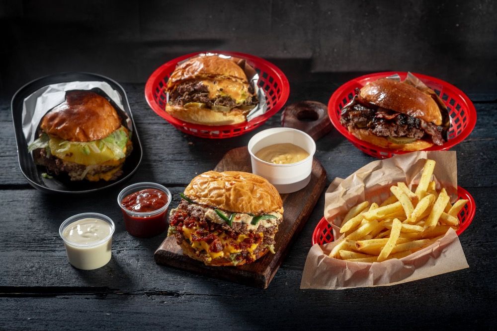 2x wołowina Smash, a. Cheese, guacamole, jalapeno, pepper paste, chorizo crunch