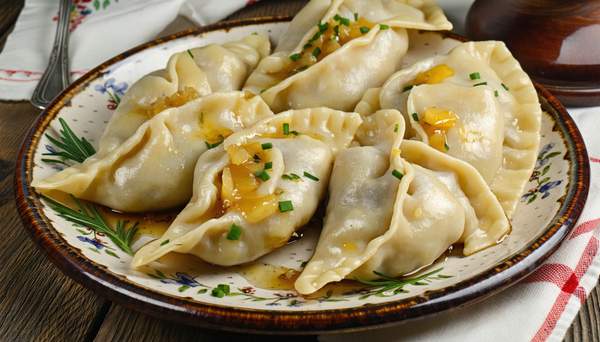 Składniki: Ciasto (mąka pszenna, woda pitna, olej rzepakowy rafinowany, sól kuchenna), nadzienie 50% (ziemniaki 59%, twaróg 40%, sól).