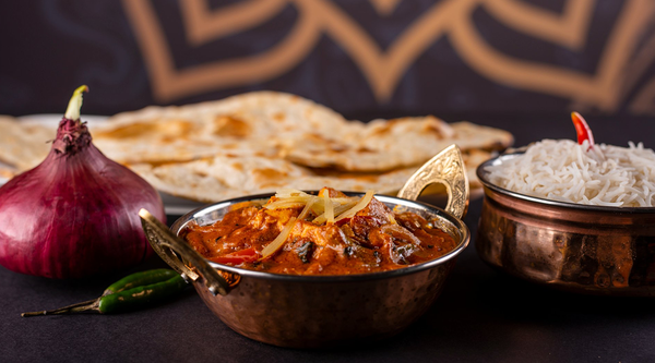 Kawałki mięsa duszone w ostrym pomidorowym sosie z vindaloo