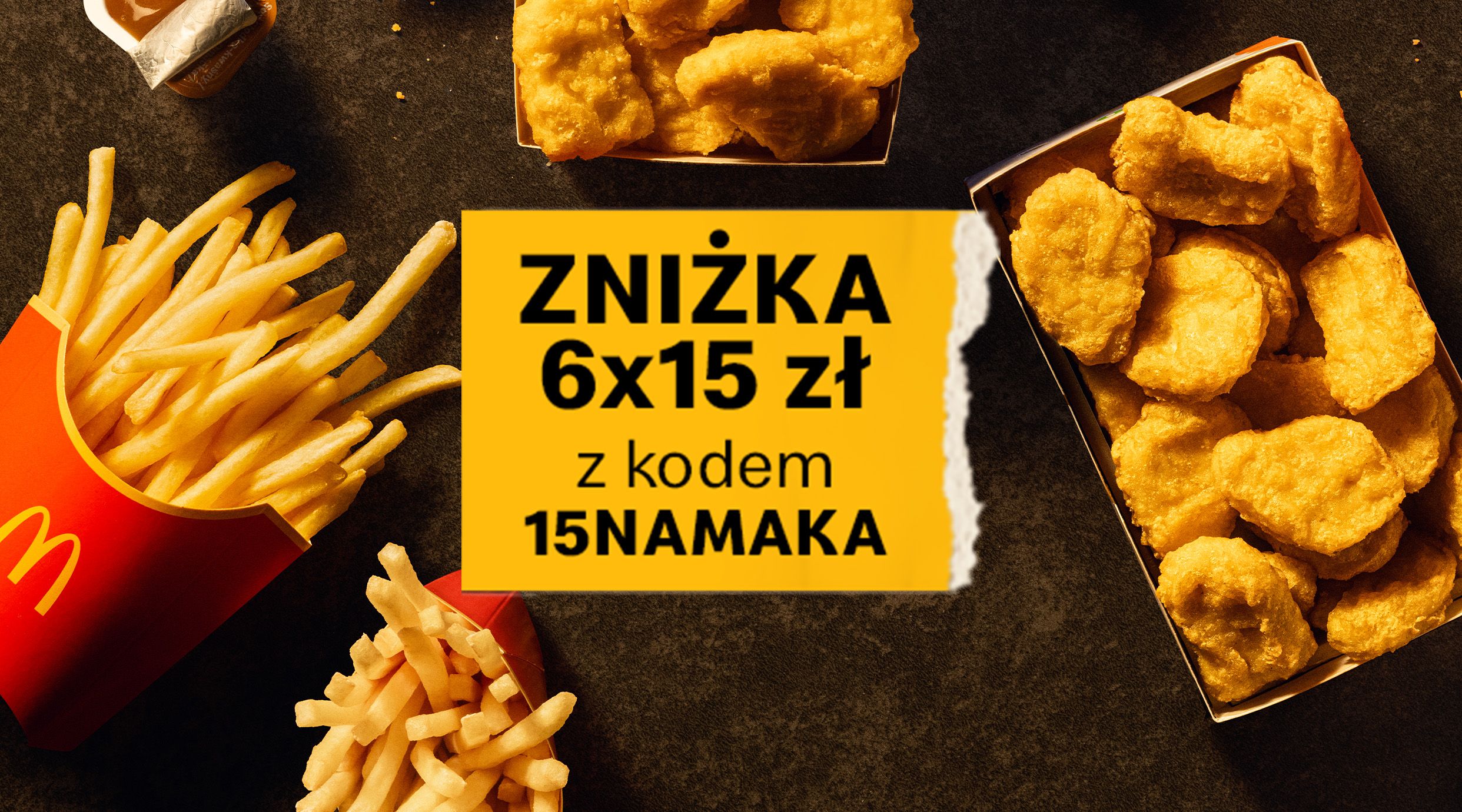 Doliczamy opłatę za obsługę. KOD: 5-18.11.2025 użytkownicy GLOVO mogą dostać 15zł zniżki na 6 zamówień w McDonald’s po wpisaniu kodu w aplikacji, przy min. wartości każdego zamówienia (produktów) 55zł.