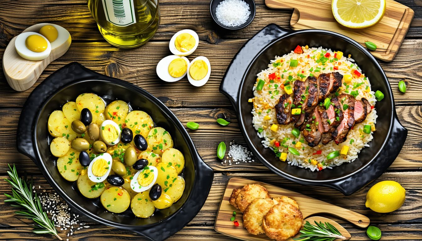 Bacalhau com batata, cebola, ovo e azeitonas
