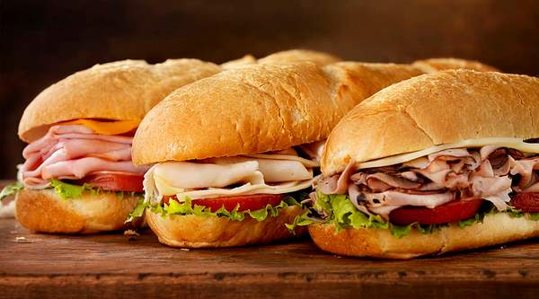 Hambúrguer, salada, queijo, fiambre, ketchup, mostarda e maionese